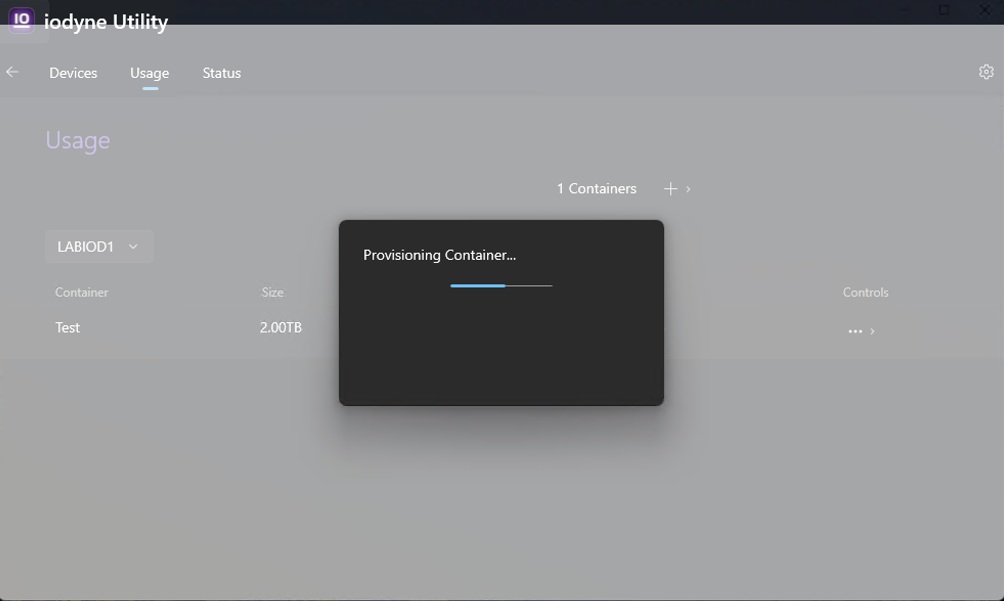 - Size: Define the container size (in GB, TB, or percentage of total capacity).