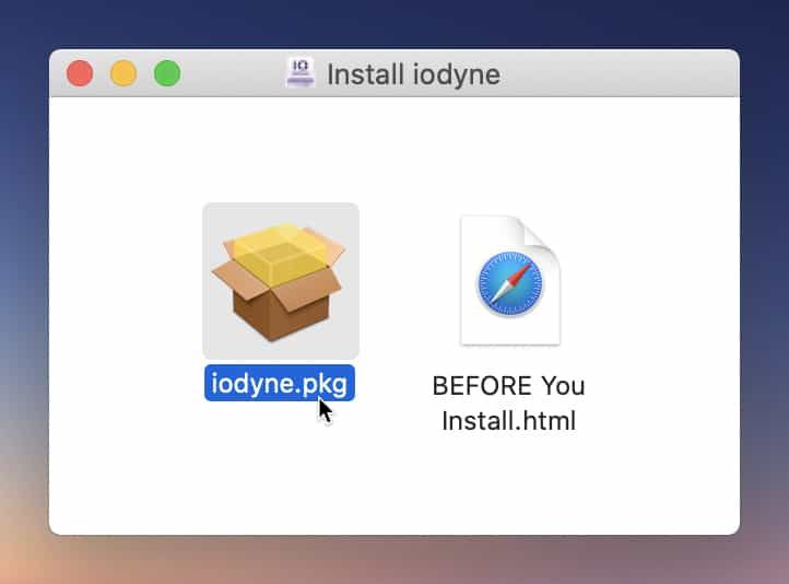 Launch iodyne.pkg from the install volume, and follow the normal installation process.