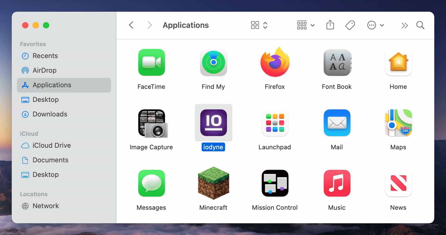 Following restart, launch iodyne.app from the Applications folder, approve the License Agreement and register with iodyne Cloud, then verify that your Pro Data device is visible from the Usage tab or the Devices menu.