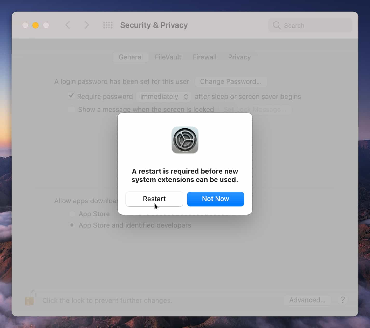 macOS 10: Opening Security & Privacy preferences macOS 11: Opening Security & Privacy preferences -